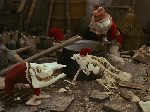 I don’t really hear the similarity, myself, lyrically or musically, although I do quite like There, There – one of maybe five or six Radiohead songs I enjoy. Apparently, Oliver Postgate (Bagpuss creator) was asked if he’d make the video for it, but he declined, having retired. The closest it gets to Bagpuss is the stop motion effect, but even that’s more sinister than Peter Firmin’s homely style, and more redolent of Jan Švankmajer’s often quite frightening animations that regularly appeared late at night on Channel 4 in the late 80s. The puppets in There, There bear more resemblance to the Cosgrove-Hall 1980’s The Wind In The Willows adaptations (which were also fucking ace, and “featured” some props made by John Squire, of The Stone Roses, particularly a load of onions in one episode) than either Jan Švankmajer’s nightmarish Brothers Grimm hybrids, or Peter Firmin’s homemade, Arts and Craftsy, friendlier visions of nature.