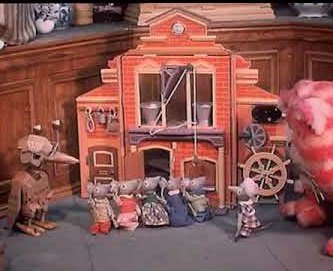 Bagpuss, as the nurturing Granddad should, encourages the mice to think about what sort of mouse would live there and Charlie mouse points out that a miller would live there.