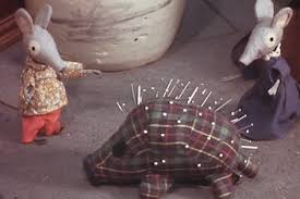 The mice find a load of pins, and put it back to its former glory, all the while singing a gibberish mouse song about porcupingling, in the round, as Primary School kids (certainly used to, I don’t know about now) love, so it can go in the window.